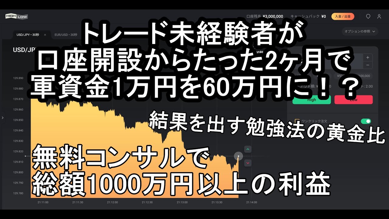 Profilingkさんに影響を受けて30秒取引を学び、ハイローで実際に利益を上げられている方です。
